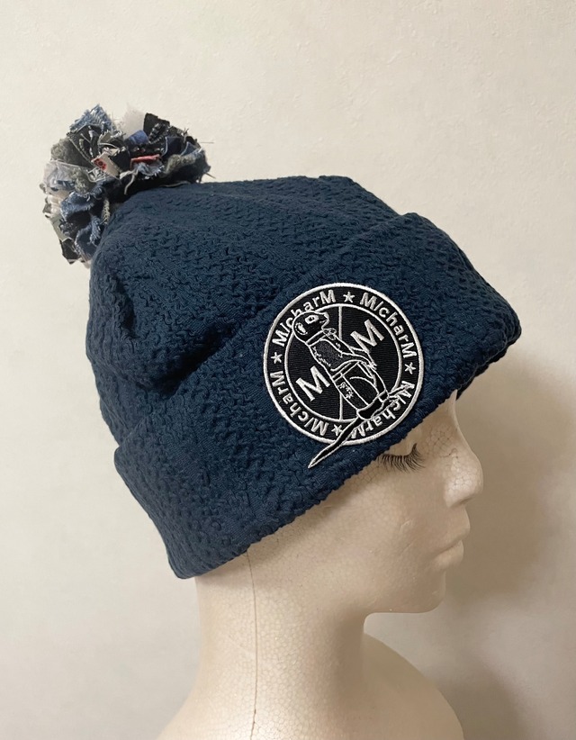 (オーダーメイドご依頼・確定購入品)異素材ぽんぽん付きニット帽