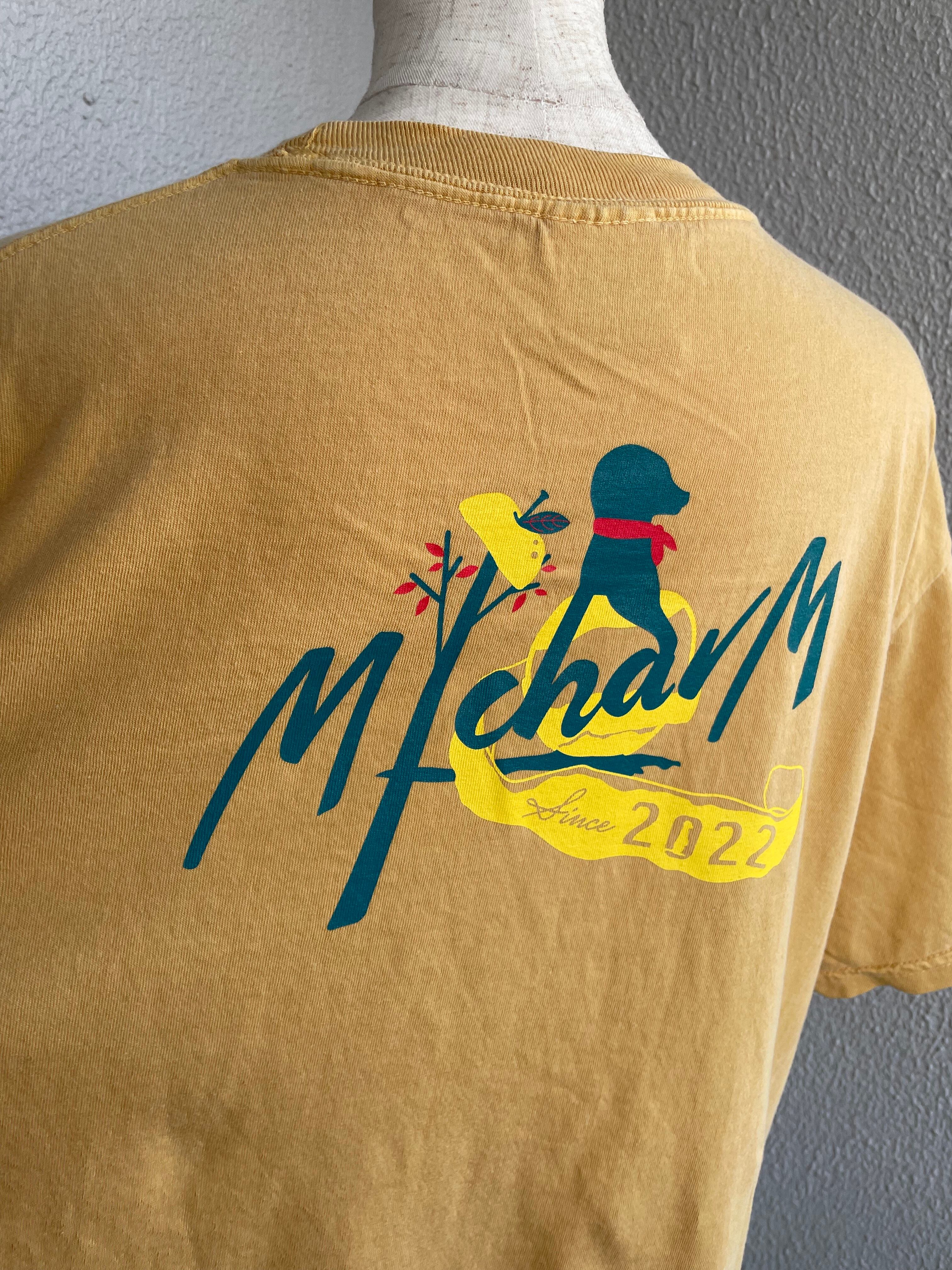 M/charM ヴィンテージ風バックプリントTシャツ(マスタード)