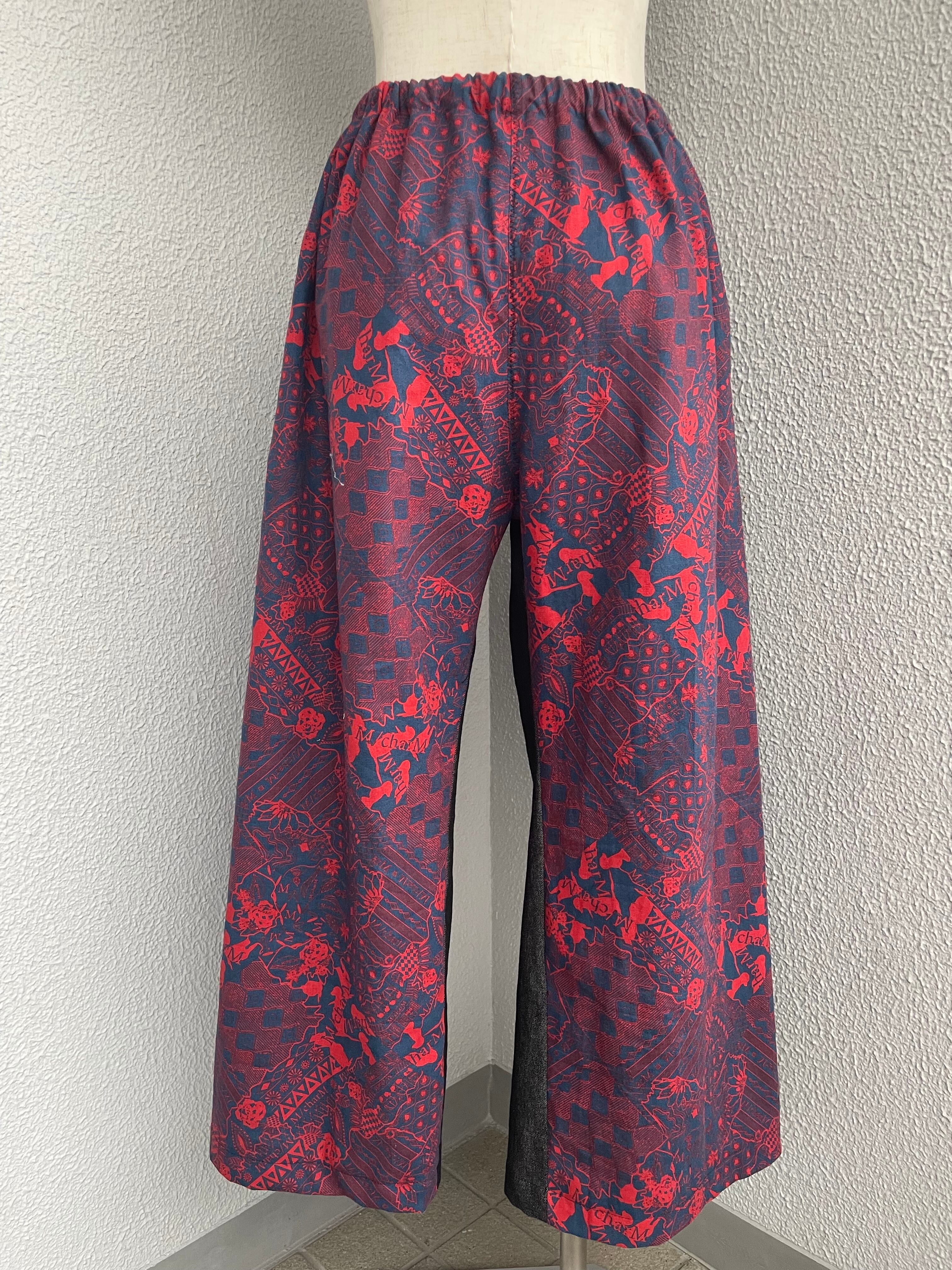 (1)個性的な無地と柄の街着遊びボトムス♪。