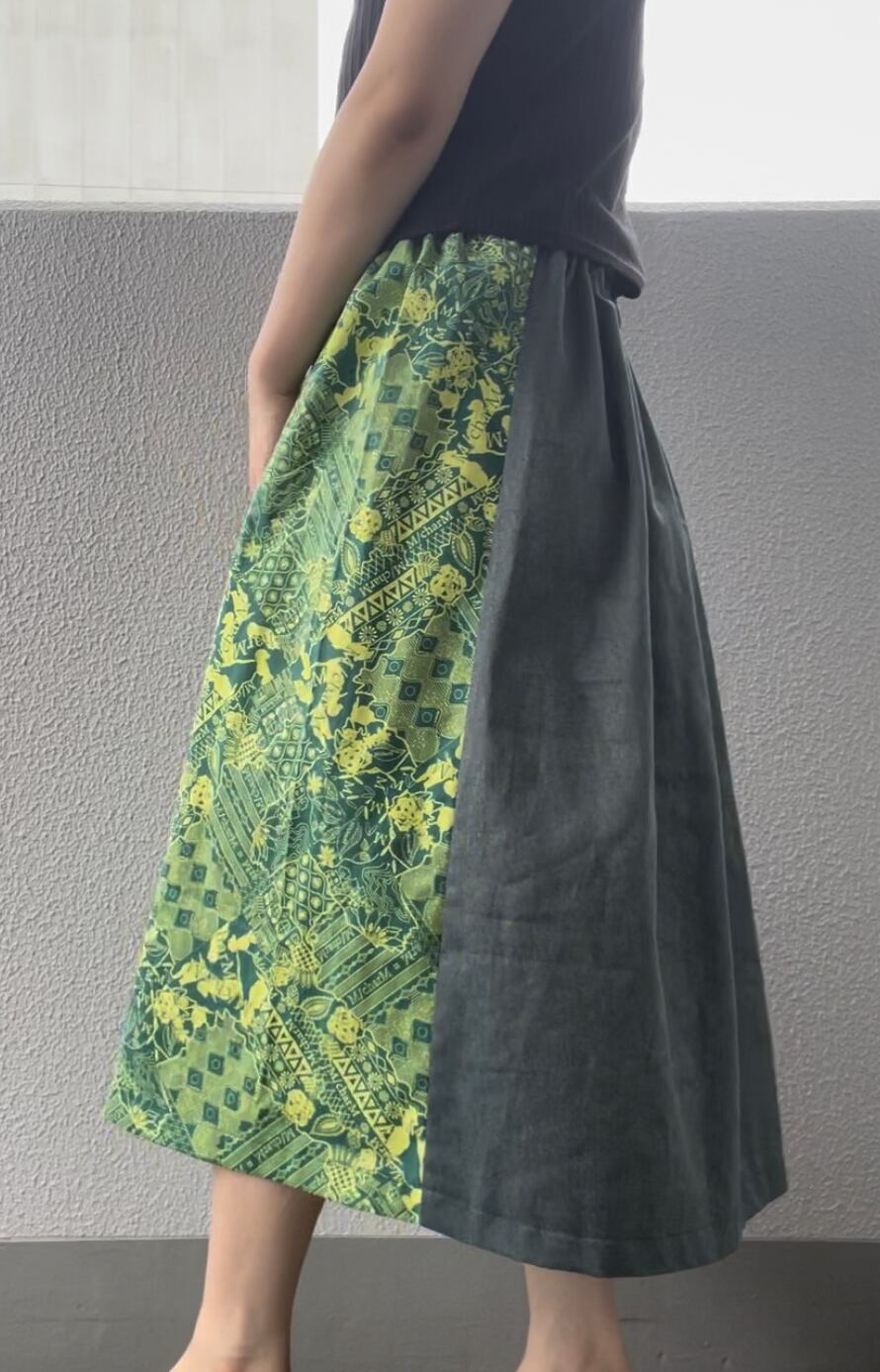 (2)太めのウエスト仕様でギャザー量が多めですので、比較的ゆったり着用できるデザインになっております(^^)