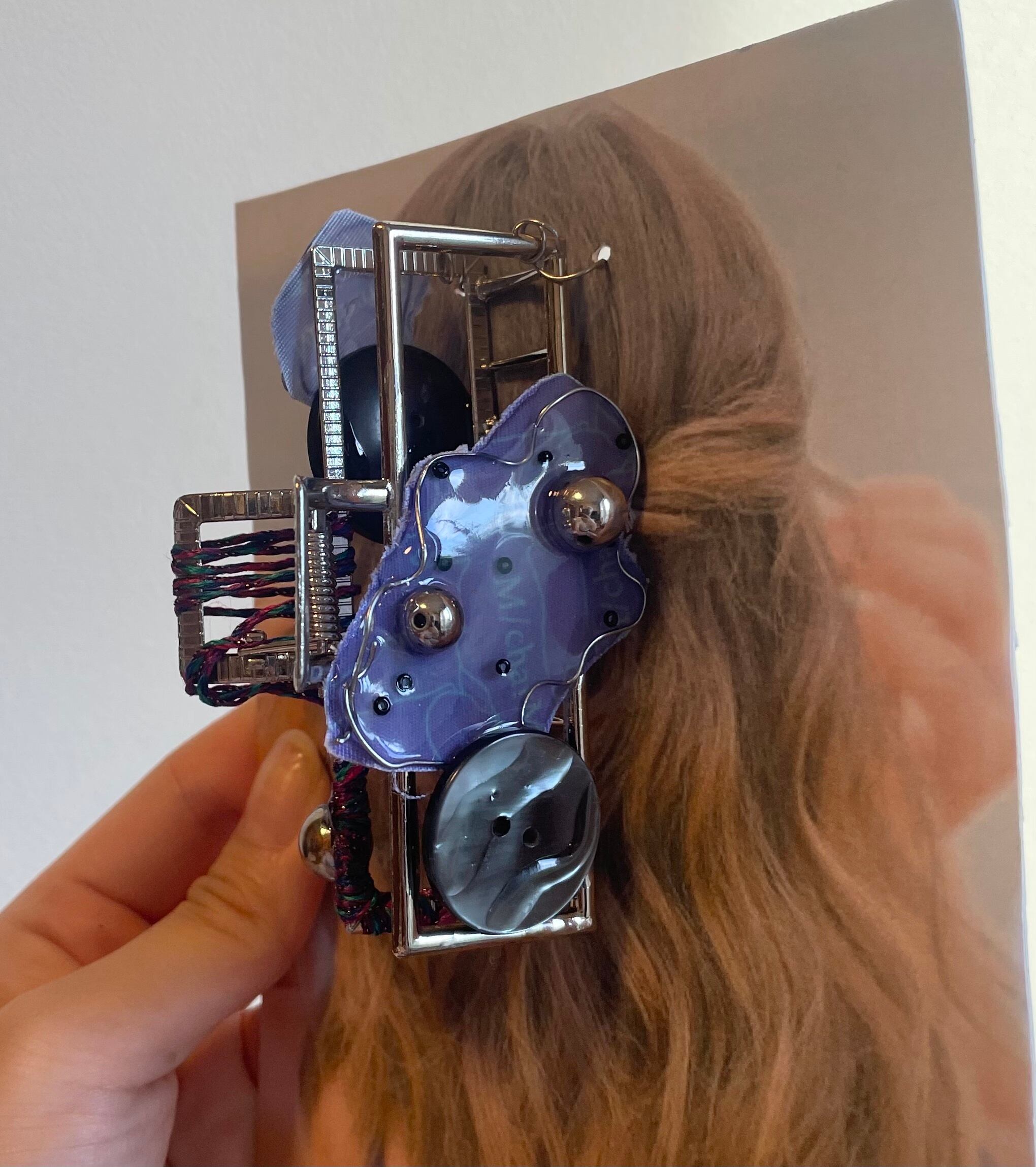 ★M /charMオリジナル生地と資材をMIXさせ、土台との空間もデザインとしたアートなバンスクリップになりました♡